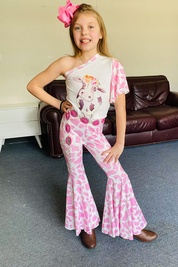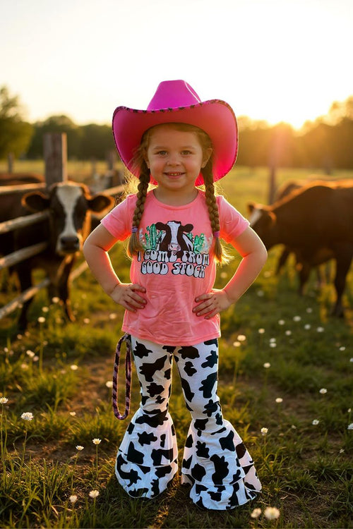I COME FROM GOOD STOCK pink top cow bell bottom 2pc girls sets XCH0666-22H (A7S1)